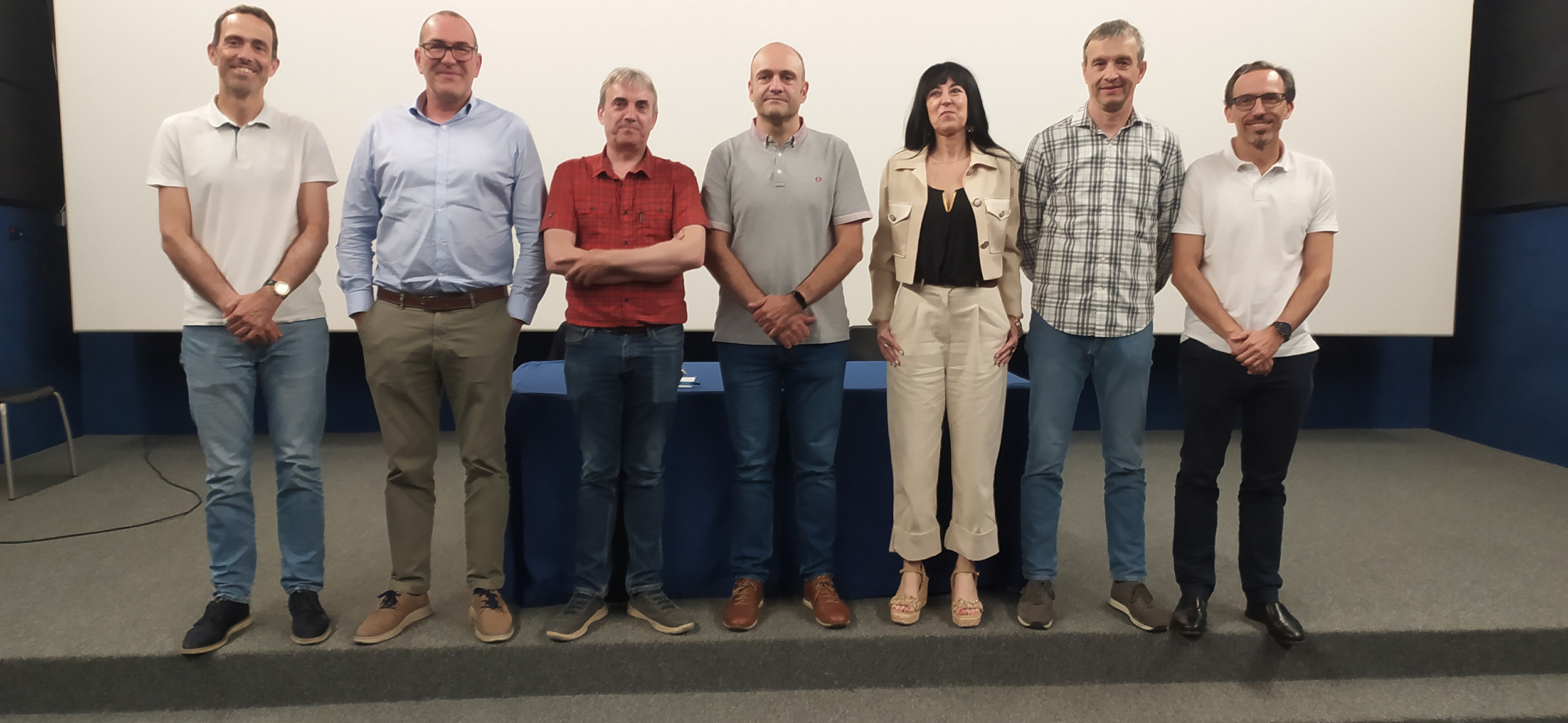 De izquierda a derecha: Xabier Ezquer, Jaime Urcola, José Félix Beregaña, Pedro Latorre, Erkuden Elbusto, Alberto Goicoechea y Manuel Turiel.
